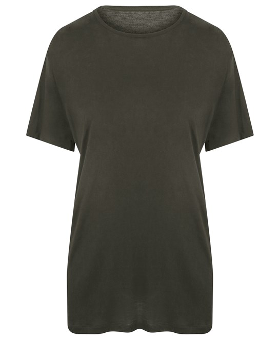 80% LENZING™ ECOVERO™, 20% organic cotton. Single Jersey. Ribbed collar. Taped neck. Side seams – non tubular body. Twin-needle detail at hem and sleeve. Set-in sleeves. Crew neck. Fashion fit. Size label only for easy rebranding.