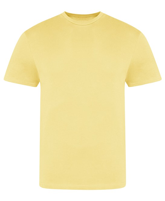 Modern fit. Short sleeves. Side seams. Taped neck. Ribbed crew neck. Twin-needle stitching detail on sleeve and bottom hem. Size label only for easy rebranding – colour coded black for unisex.