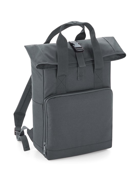 TearAway label for ease of rebranding. Roll-top closure. Front pocket organiser section. Front pocket designed for easy decoration. Webbing carry handles. Zippered internal pocket. Padded back panel. Padded adjustable shoulder straps. BSCI certified. Reach certified.